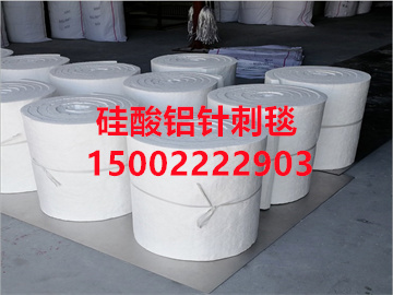 硅酸铝甩丝针刺毯:是在生产甩丝过程中,加入一定的辅料,经布棉沉降、整形针刺(把纤维采用针刺加强的方法,使纤维相互勾织,制成的柔性毯状制品)、高温定型、纵横切割、称重打包等工序而成。特别我公司的双面针刺工艺,使产品质量远远高于普通针刺毡。
