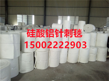 硅酸铝甩丝针刺毯:是在生产甩丝过程中,加入一定的辅料,经布棉沉降、整形针刺(把纤维采用针刺加强的方法,使纤维相互勾织,制成的柔性毯状制品)、高温定型、纵横切割、称重打包等工序而成。特别我公司的双面针刺工艺,使产品质量远远高于普通针刺毡。